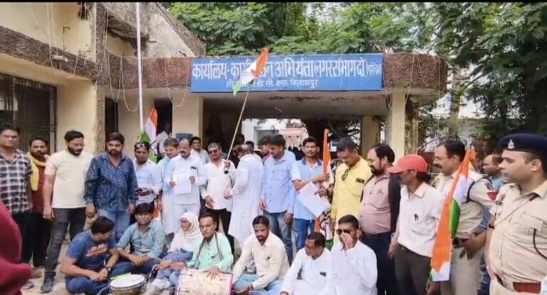 बिलासपुर। बिजली कटौती के विरोध में कांग्रेस ने नेहरू नगर बिजली दफ्तर का घेराव किया। ढोल बजाकर सोई हुई सरकार को जगाने के लिए कांग्रेस ने प्रदर्शन किया। ब्लॉक कांग्रेस कमेटी एक के अध्यक्ष जावेद मेमन की अगुवाई में नेहरू नगर बिजली दफ्तर मैं धरना दिया गया तथा विरोध प्रदर्शन, नारेबाजी करते हुए कार्यपालन अभियंता को ज्ञापन दिया।