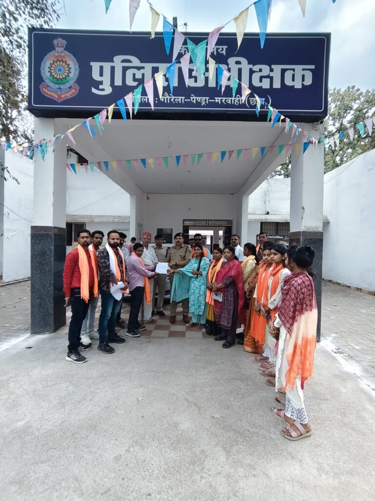 ​पेंड्रा। विश्व हिंदू परिषद (विहिप) एवं बजरंगदल मातृशक्ति दुर्गावाहिनी जिला इकाई ने बिलासपुर मुख्य मार्ग, पेंड्रा पर स्थित शराब दुकान को अन्यत्र स्थानांतरित करने हेतु कलेक्टर महोदया और पुलिस अधीक्षक को ज्ञापन सौंपा है। संगठन ने स्पष्ट किया है कि यदि 20 दिनों के भीतर जनहित में यह कदम नहीं उठाया गया, तो उग्र आंदोलन किया जाएगा।