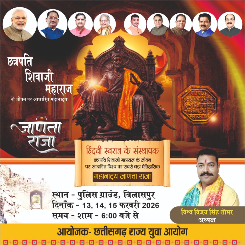 राज्य युवा आयोग के अध्यक्ष विश्वविजय सिंह तोमर ने कहा कि छत्रपति शिवाजी महाराज केवल इतिहास के पन्नों तक अध्यक्ष सीमित व्यक्तित्व नहीं, बल्कि भारत के आत्मगौरव, स्वाभिमान और साहस के जीवंत प्रतीक हैं। स्वराज के संस्थापक शिवाजी महाराज के अद्वितीय जीवन, संघर्ष और जनकल्याण की भावना को सजीव रूप में प्रस्तुत करने वाला विश्वप्रसिद्ध ऐतिहासिक महानाट्य जाणता राजा बिलासपुर की धरती पर 13 से 15 फरवरी तक मंचित होने जा रहा है।