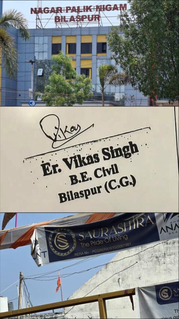 इस पूरे मामले का दूसरा चौंकाने वाला पहलू उस आर्किटेक्ट या इंजीनियर का नाम है जिसके माध्यम से यह नक्शा तैयार किया गया। दस्तावेजों में ‘विकास सिंह’ नाम दर्ज है। लेकिन बिलासपुर शहर में इस नाम का कोई पंजीकृत आर्किटेक्ट या इंजीनियर उपलब्ध ही नहीं है। नगर निगम के रिकॉर्ड और पेशेवर संस्थाओं से प्राप्त जानकारी के अनुसार इस नाम का कोई भी व्यक्ति आधिकारिक रूप से वास्तुकार या इंजीनियर के रूप में पंजीकृत नहीं है।