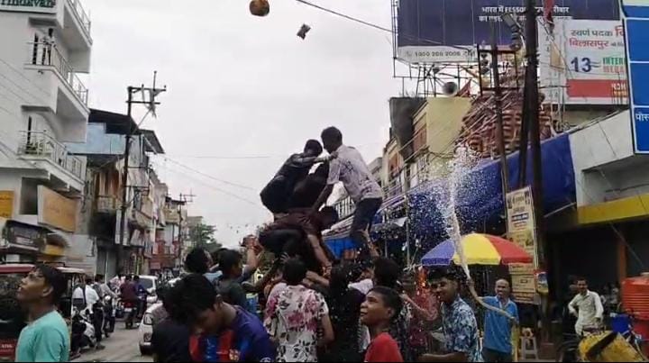 बिलासपुर में युवाओं ने मटकी फोड़ कार्यक्रम कर मनाई जन्माष्टमी