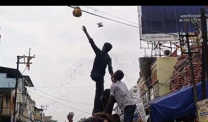 एक- दूसरे के कंधो पर चढ़कर युवाओं ने फोड़ी दही- हांडी