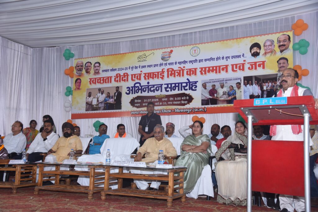 बिल्हा को स्वच्छता में देश भर में प्रथम बनाने में योगदान के लिए उप मुख्यमंत्री ने स्वच्छता दीदियों और सफाई कर्मियों को किया सम्मानित