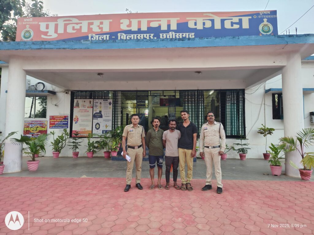 आसपास के लोगो के समझाइश भी दी उसके बाद भी बदमाश युवक अपनी आदतों से बाज नहीं आए।घटना की शिकायत के आधार पर पुलिस ने तत्काल शांति भंग की संभावना को देखते हुए कोटा पुलिस ने त्वरित कार्यवाही करते हुए कांति कुमार पिता कालिका प्रसाद प्रजापति, उम्र 29 वर्ष, साकिन पुरानी बस्ती, वार्ड क्रमांक 08,अमर सिंह पिता देवी सिंह जट्ट, उम्र 29 वर्ष, साकिन बंधवापारा, वार्ड क्रमांक 12, कोटा।