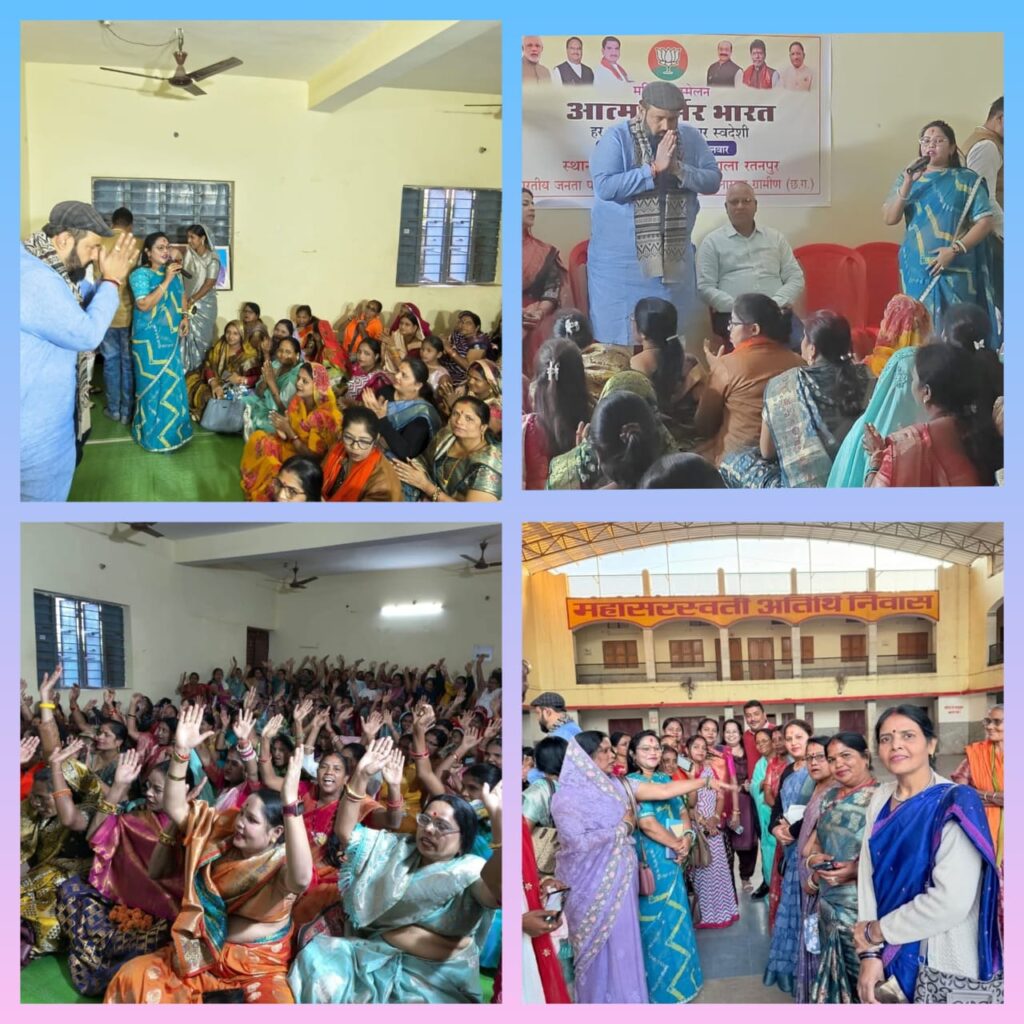 रतनपुर,,,, महामाया धर्मशाला भारतीय जनता पार्टी महिला मोर्चा का महिला सम्मेलन, आत्मनिर्भर भारत “””हर घर स्वदेशी घर घर स्वदेशी””””
