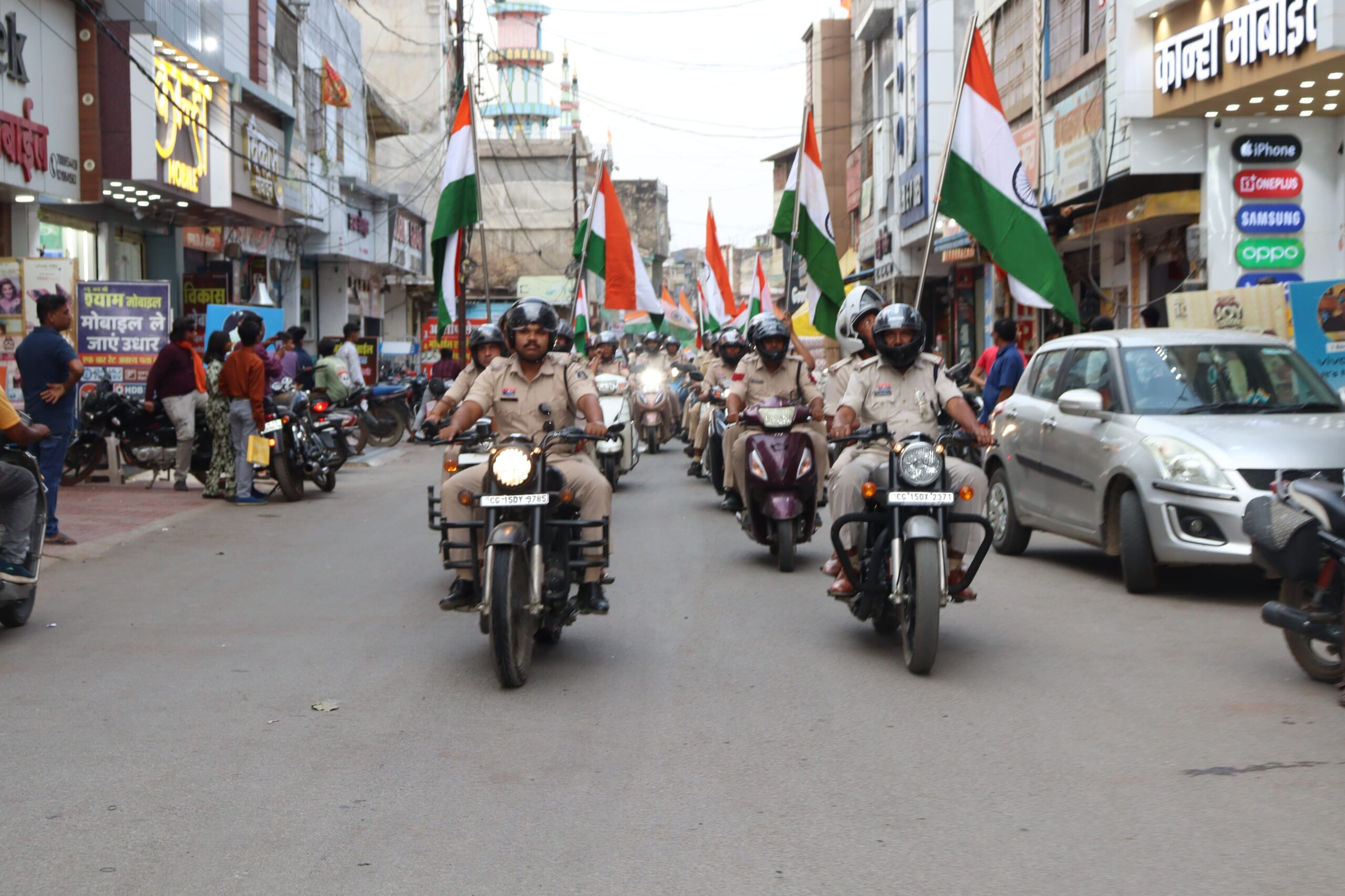 शहर के प्रमुख चौक चौराहो मे पुलिस टीम द्वारा मोटरसायकल रैली निकालकर देश के सैनिको के अदम्य साहस को किया गया सलाम।