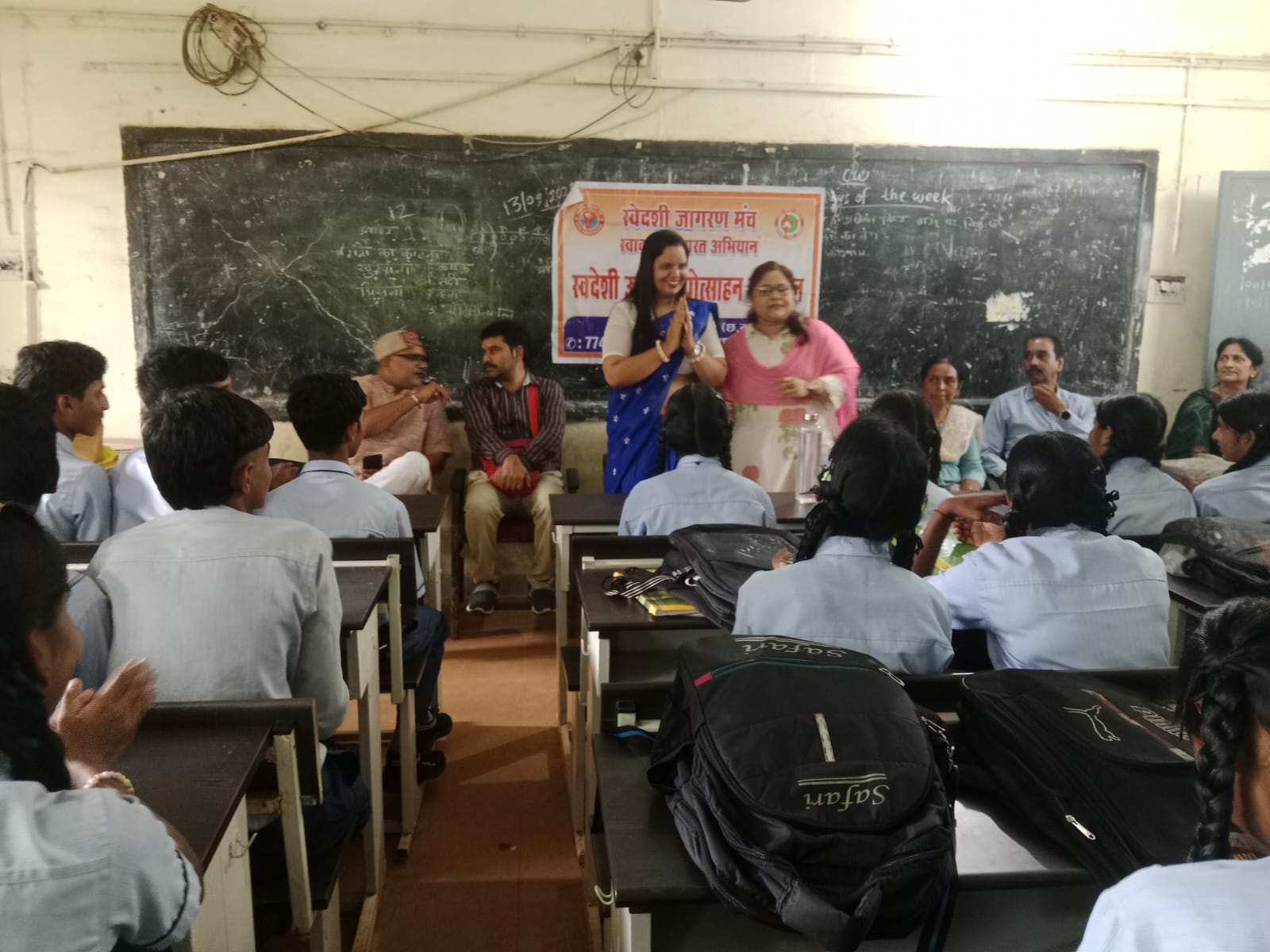 अपने उद्बोधन में श्रीमती सुमन द्विवेदी ने बताया कि वर्तमान में भारत सरकार द्वारा भी उद्यमिता को प्रोत्साहित करने नए नए प्रयोग किए जा रहे हैं स्टार्टअप की संख्या ने इज़ाफ़ा हुआ है रोज़गार के नए रास्ते तलाशे जा रहे हैं जिसमें व्यापक सफलता देखने को मिल रहा है मंच की सम्भागीय पदाधिकारी अरुणा दीक्षित और चांनी एरी ने छात्र छात्राओं को स्वदेशी उत्पाद उपयोग करने शपथ दिलाई इस अवसर पर प्रणव शर्मा समदरिया सुशांत द्विवेदी योगेन्द्र बंजारे विवेक पाण्डे सहित विद्यालय के प्राचार्य और व्याख्याता गण उपस्थित थे