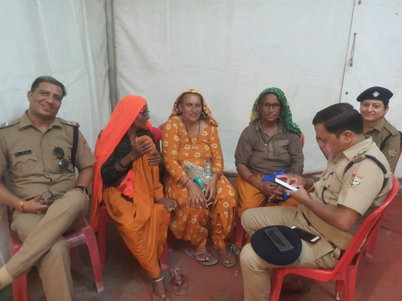 तीनो बुजुर्ग महिलाये काफी घबराई हुई थी जिनको पुलिस द्वारा बूथ में बैठाकर पानी व जूस पिलाया गया तथा उनके साथियों को शीघ्र ढूढने का विश्वास दिलाया गया। तीनो बुजुर्ग महिलाएं बुजुर्ग एवं अनपढ़ होने के कारण घर का मोबाइल नंबर एवं थाना तथा जिले के बारे में भी स्पष्ट जानकारी नहीं दे पा रही थी, जिस पर बुजुर्ग महिलाओं द्वारा बताए गए गांव को पुलिस कर्मियों द्वारा गूगल पर सर्च कर संबंधित थाने के बारे में जानकारी की गई तथा संबंधित थाने में वार्ता कर महिलाओं के गांव के सरपंच से जानकारी कर पिकअप वाहन के ड्राइवर का मोबाइल नंबर प्राप्त किया गया।