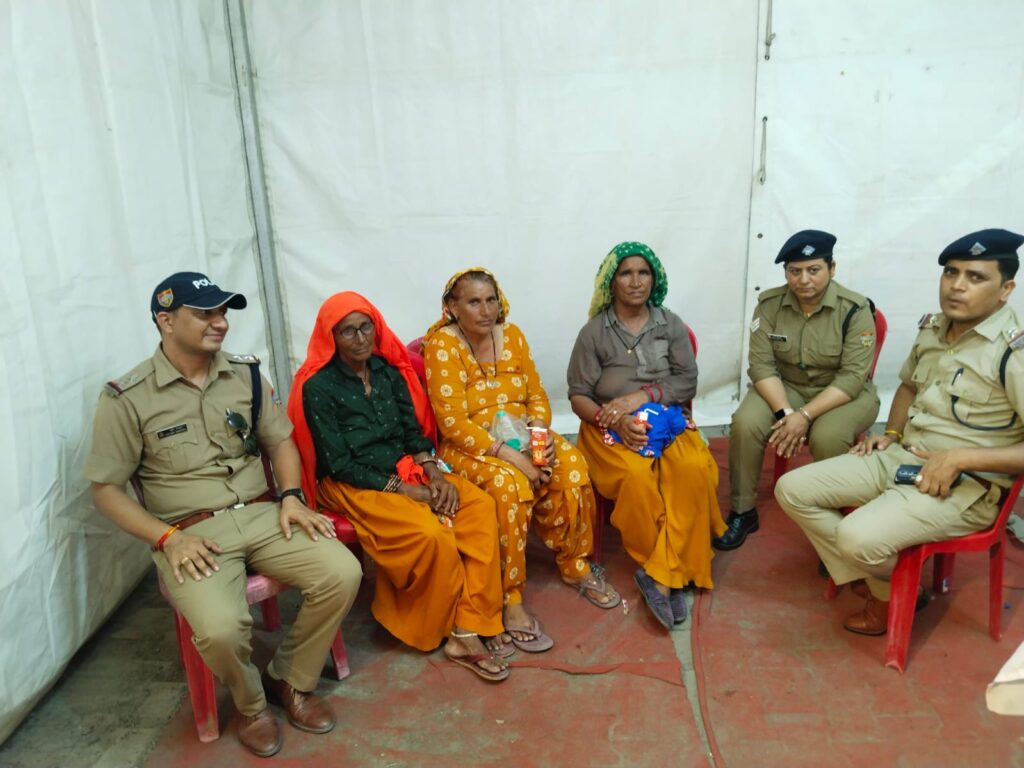 कोतवाली ऋषिकेश।दिनांक 19/07/2025 की सायं ऋषिकेश पुलिस को नटराज चौक पर 03 बुजुर्ग महिलाये परेशान हालत में घूमते हुए मिली, जिस पर नटराज चौक पर ड्यूटी पर नियुक्त पुलिस बल द्वारा तीनो बुजुर्ग महिलाओं को पुलिस बूथ पर बैठाकर उनसे जानकारी की गई तो उनके द्वारा अपना नाम मेवा, बतासी और मिश्री बताया तथा नौरंगाबाद गुर्जरों की ढाणी तिलोडी हरियाणा से अपने गांव की अन्य महिलाओं के साथ कांवड़ यात्रा के लिए आना बताया गया। उनके द्वारा बताया कि अपने गांव से वे कुल 11 महिलाएं आई थी तथा उनके द्वारा गाड़ी को किसी पार्किंग में किया था, जिसके बाद वे सभी दर्शन के लिए नीलकंठ गए थे लेकिन वापस आते समय वे तीनों अपने साथियों से बिछड़ गए, उन्हें उक्त स्थान की भी जानकारी नही है जहाँ उन्होंने गाड़ी खड़ी की थी।