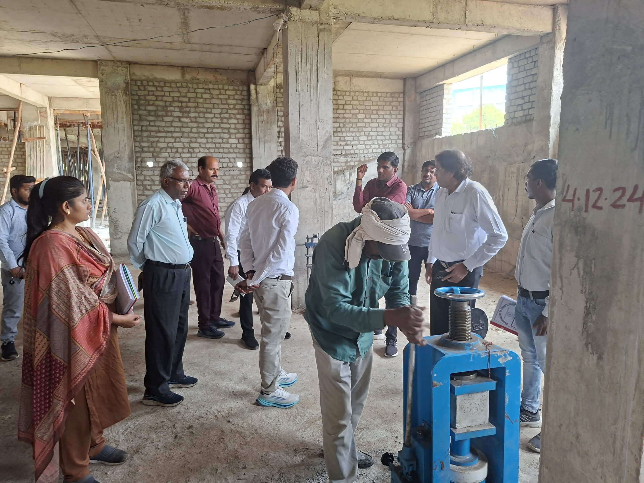 उन्होंने सबसे पहले डिस्ट्रिक्ट कोर्ट बिल्डिंग का मुआयना किया ।भवन में प्रयुक्त किये जा रहे सामग्रियों के परीक्षण हेतु नमूने एकत्र किया ,जिसे रायपुर के प्रयोगशाला में जांच कर संबंधित विभाग को रिपोर्ट प्रेषित किया जाएगा ।नमूने के रूप में मुख्य रूप से इस्तेमाल किया जा रहे ईंट , छड़ और स्टील के नमूने लिए गए। भवन में कालम तथा कंक्रीट की गुणवत्ता की जांच एनडीटी उपकरणों के द्वारा किया गया । प्रत्येक तल में बीम और कालमका परीक्षण किया गया, जिसका रिपोर्ट मानक स्तर पर पाया गया। स्थल पर स्थापित लैब का भी निरीक्षण सतर्कता परीक्षा द्वारा किया गया। सुरक्षा उपकरण सूची ठेकेदार से ली गई। कब-कब कैलिब्रेशन किया गया, इसकी जानकारी भी ली गई । ठेकेदारों द्वारा नियुक्त तकनीकी अमलों की सूची भी ली गई। स्थल पर सुरक्षा के लिए प्रयुक्त सामग्रियों की सूची मांगी गई । भवन में उपयोग हो रहे ऑटो क्लव्ड ईंट और कंक्रीट ब्लॉक के संबंध में जानकारी ली गई। इस ब्लॉक का टेस्ट जो निर्माण कर रहा है, उसके रिपोर्ट को रख रखे जाने के निर्देश दिए गए। अधिकारियों से कहा गया कि तिल्दा स्थित इस कंपनी के कारखाने में जाकर ब्लॉकों का परीक्षण करें। निर्माण अधीन कार्यों में सुरक्षा का उपाय सही तरीके से नहीं होना पाया गया जिससे दुर्घटना की संभावना व्यक्त की गई। अधिकारियों को सुरक्षा का पालन करने अन्यथा ठेकेदार के खिलाफ कार्रवाई करने के निर्देश दिए गए। जिला बिल्डिंग में लेबर कैंप को हटाकर सुरक्षित जगह पर करने के निर्देश दिए ।