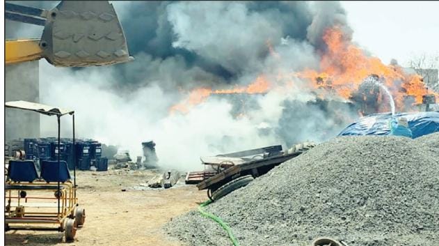 यार्ड में लगी आग, एक करोड़ की क्षति
