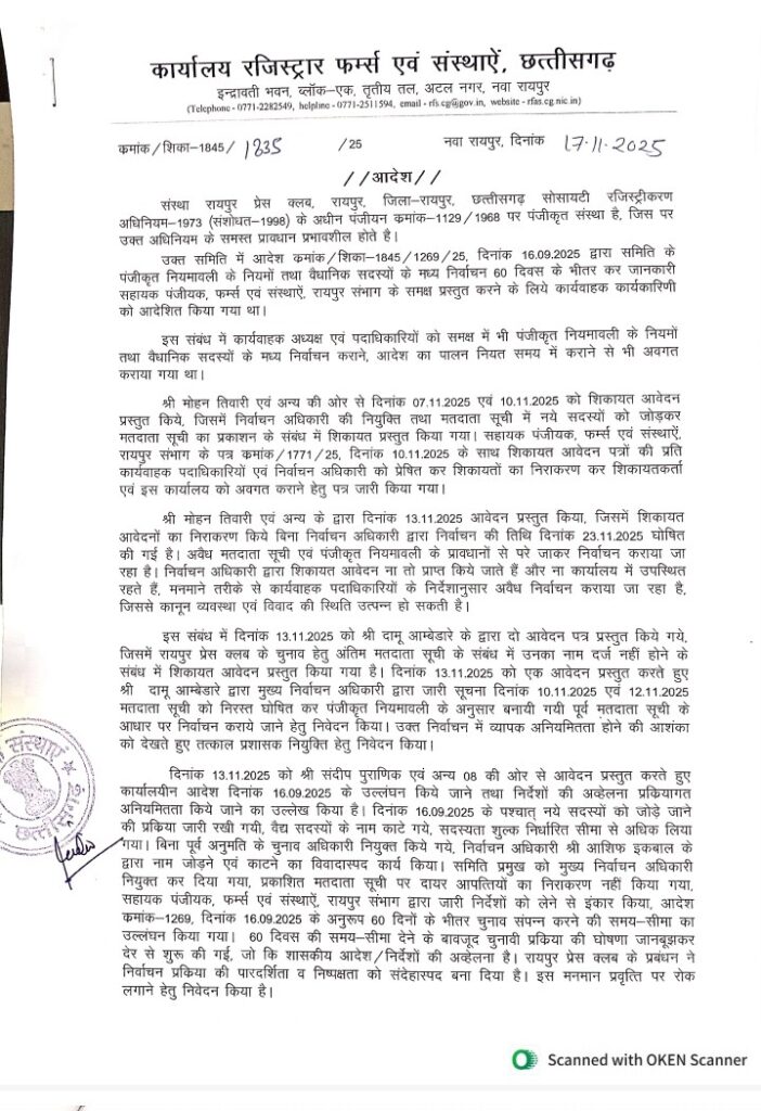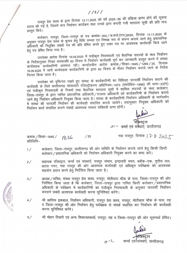 रायपुर प्रेस क्लब चुनाव स्थगित, अब घोषित होगी नई तिथि, देखें आदेश…