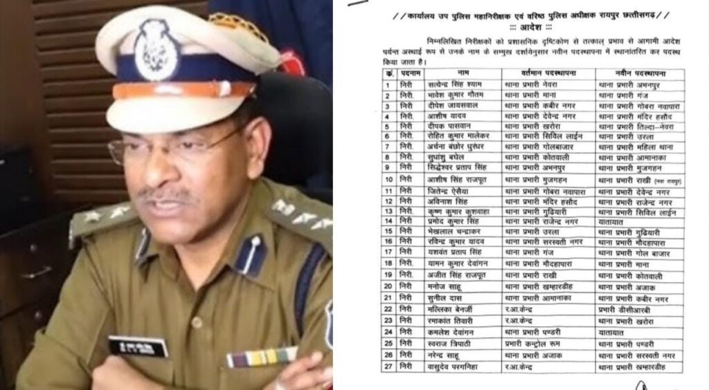 रायपुर SSP ने 2 दर्जन से अधिक थाना प्रभारियों का किया तबादला आदेश जारी…देखें सूची