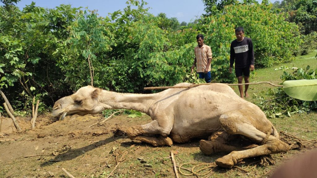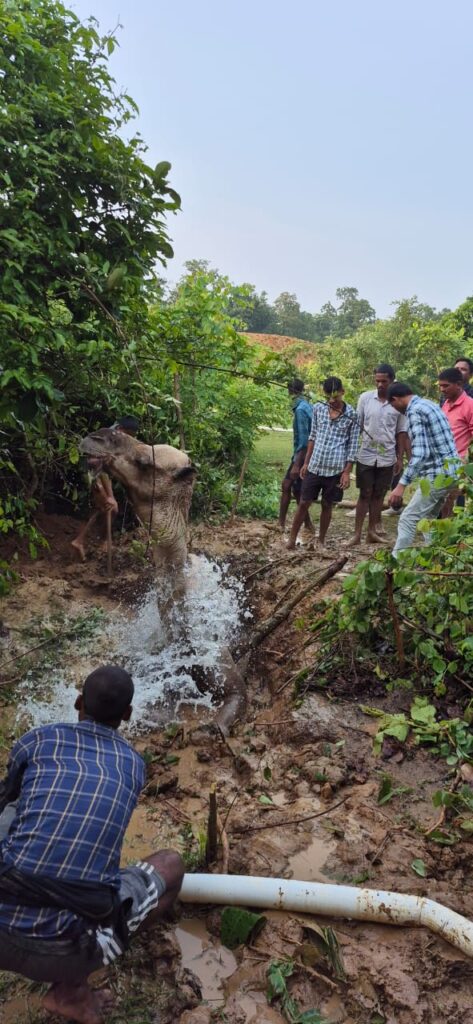 जंगल के गड्ढे में फंसे ऊंट को ग्रामीणों की मदद से लव कुश कश्यप के पहल से सुरक्षित निकला गया