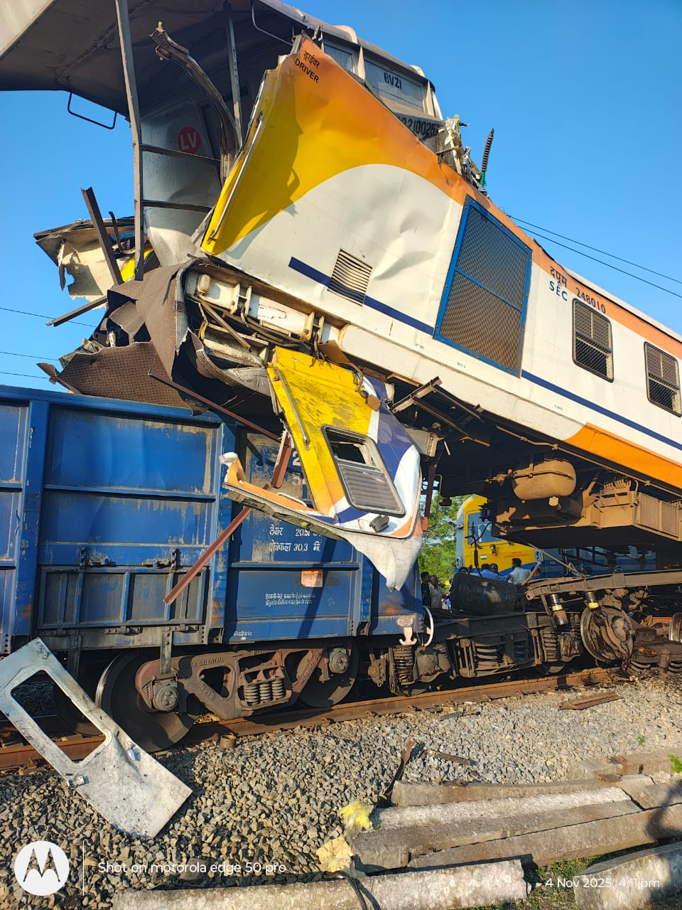 बिलासपुर में भीषण रेल हादसा हुआ, जब गेवरा रोड से रायपुर जा रही लोकल ट्रेन आउटर पर खड़ी मालगाड़ी से जा टकराई। हादसा चौकसे कॉलेज के पास हुआ, जहां तेज रफ्तार में आ रही लोकल ट्रेन सामने खड़ी मालगाड़ी से जोरदार टक्कर खा गई। टक्कर इतनी भीषण थी कि आगे के डिब्बे पूरी तरह क्षतिग्रस्त हो गए और यात्रियों में चीख-पुकार मच गई।सूचना मिलते ही रेलवे अधिकारी, जीआरपी और आरपीएफ की टीम मौके पर पहुंची और राहत-बचाव कार्य शुरू कर दिया गया। प्रारंभिक जानकारी के अनुसार, कई लोगों की मौत और दर्जनों यात्रियों के घायल होने की आशंका जताई जा रही है। घायलों को नजदीकी अस्पतालों में भर्ती कराया गया है। रेल प्रशासन ने हादसे की जांच के आदेश दे दिए हैं और फिलहाल प्रभावित रूट पर ट्रेन सेवाएं रोक दी गई हैं। हादसे के कारणों का पता लगाया जा रहा है।