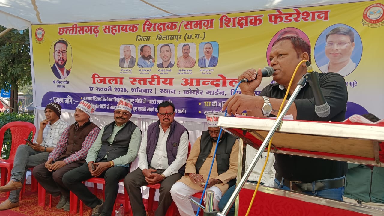 बिलासपुर ।शनिवार को शिक्षकों का आक्रोश खुलकर सड़कों पर दिखाई दिया। छत्तीसगढ़ सहायक शिक्षक एवं समग्र शिक्षक फेडरेशन के आह्वान पर हजारों शिक्षक कानन गार्डन में एकत्र हुए और अपनी लंबित मांगों को लेकर जोरदार प्रदर्शन किया। वादाखिलाफी से नाराज़ शिक्षकों ने एक दिवसीय धरना देते हुए सरकार को स्पष्ट चेतावनी दी कि यदि उनकी मांगों पर जल्द निर्णय नहीं लिया गया, तो आंदोलन को और तेज किया जाएगा।