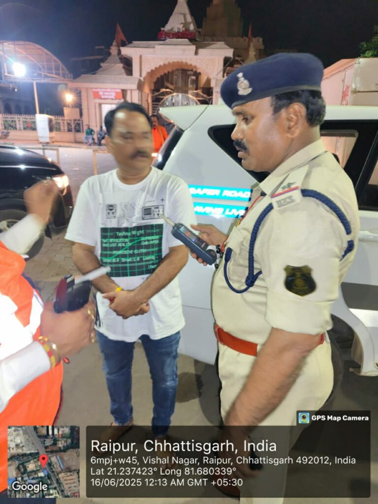 शनिवार एवं रविवार रात ड्रंक एंड ड्राइव कर वाहन चलाने वाले वाहन चालकों के खिलाफ रायपुर पुलिस की अभियान कार्यवाही लगातार जारी