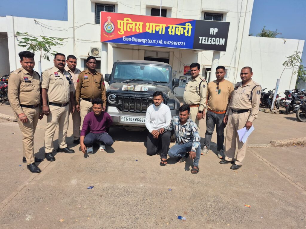 सकरी पुलिस को मुखबीर सूचना मिली कि कार थार नम्बर सीजी 10 बीडब्लू 6664 में तीन लड़के शराब के नशे में कार को चलाकर ऐक्सीडेंट कर भाग रहे हैं।इसी बीच पुलिस ने कार्रवाई करते हुए आसमा सिटी फेस 2 मेन्ड्रा जाने वाले रोड के पास जाकर घेराबंदी किया गया।इस दौरान कार के बैठे आरोपियो ने पुलिस टीम को देखकर अपनी कार थार वाहन को छोडकर अपने अपने हाथो में चाकू को लहराते हुए भागने लगे जिन्हे कडी मशक्कत के बाद पकडा गया । पकड़े गए आरोपियो में