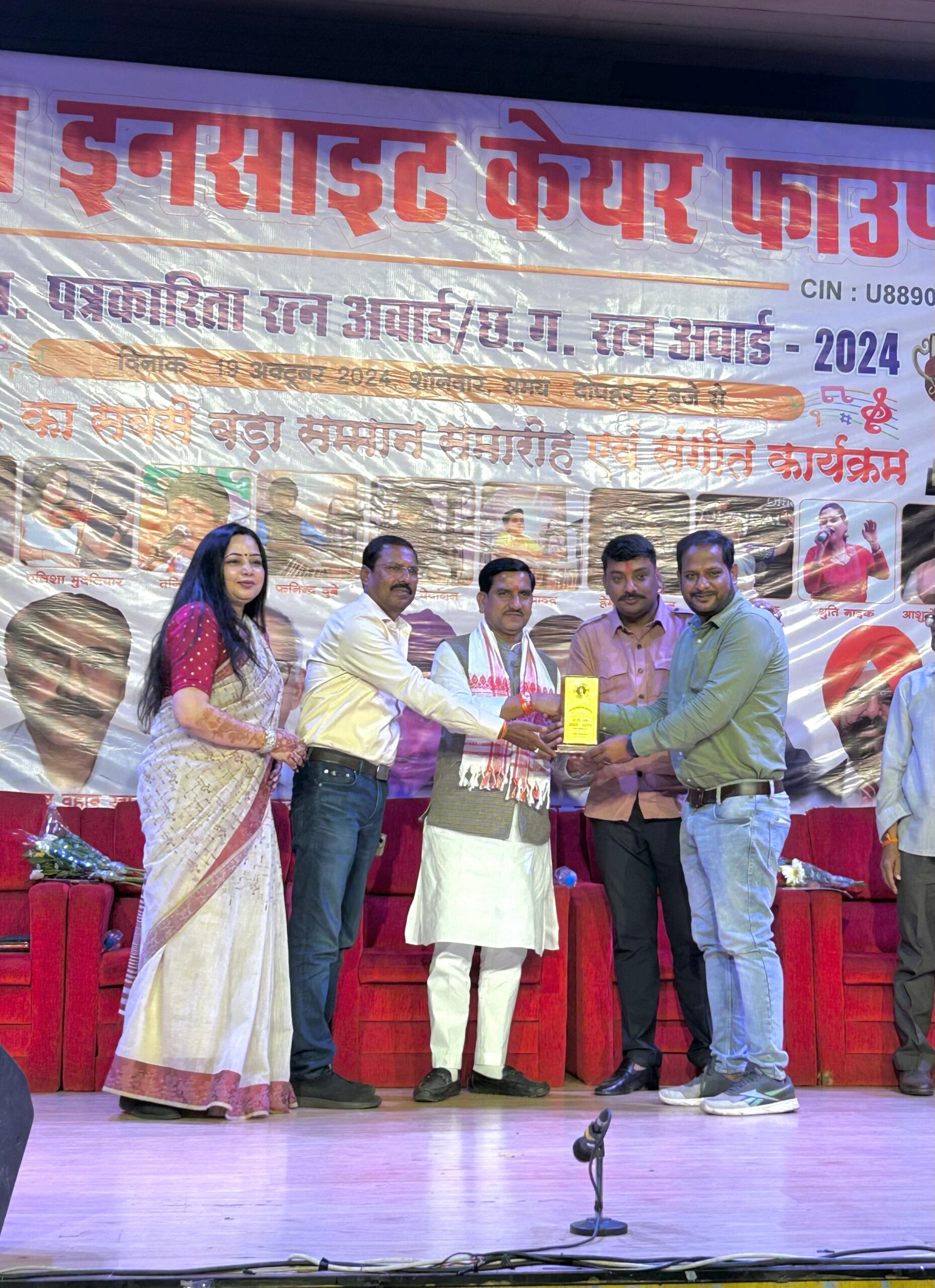 Bilaspur. न्यूज हब इनसाइट केयर फाउंडेशन द्वारा छत्तीसगढ़ की सबसे बड़ी अवार्ड सेरेमनी 2024 आयोजन किया गया था जिसमे शांता फाउंडेशन के फाउंडर सामाजसेवी गौसेवक नीरज गेमनानी सामाजिक कार्य एवं गौ सेवा हेतु केंद्रीय राज्य मंत्री तोखन साहू के करकमलों से सम्मानित हुए।उक्त कार्यक्रम में विधायक बेलतरा सुशांत शुक्ला ,भाजपा नेत्री किरण सिंह एवं वरिष्ठ पत्रकार रवि शुक्ला उपस्थित रहे शांता फाउंडेशन न्यूज हब इनसाइड केयर फाउंडेशन के संस्थापक पंकज खण्डेलवाल को इस सम्मान हेतु धन्यवाद देता है