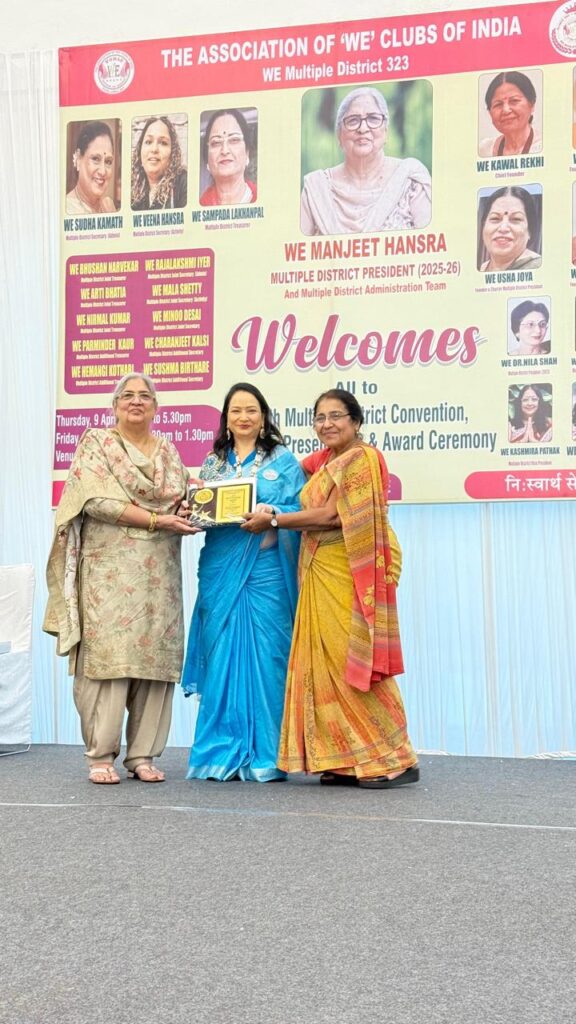 बता दें कि वी अलका अग्रवाल वर्तमान में ”वी” क्लब्स ऑफ इंडिया के डिस्ट्रिक्ट 323-G-3 की डिस्ट्रिक्ट सचिव सेवा गतिविधि के रूप में कार्यरत हैं। उनके कुशल नेतृत्व में क्षेत्र में कई सामाजिक, मानव सेवा एवं जनकल्याणकारी गतिविधियां सफलतापूर्वक संपन्न हो रही हैं, जिसके चलते उन्हें यह गौरवपूर्ण सम्मान प्राप्त हुआ।