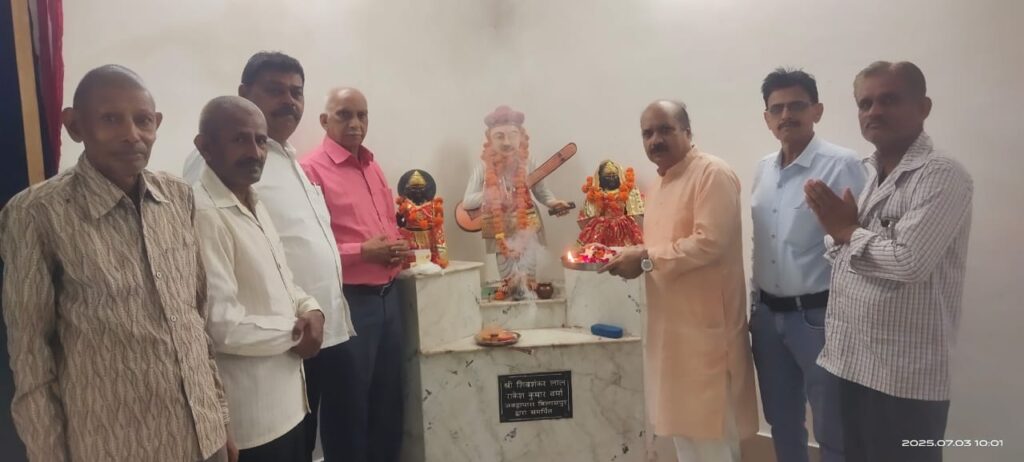 इस अवसर पर श्री नामदेव फाउंडेशन के अध्यक्ष एनपी नामदेव, संरक्षक शिवकुमार वर्मा, सचिव दिनेश चंद्र श्रीवास्तव, उपाध्यक्ष अखिल वर्मा, ने गोडपारा दर्ज़ी मंदिर में पूजा अर्चना की। संत नामदेव सामुदायिक भवन में संत नामदेव जी की महा आरती एवं प्रसाद वितरण किया गया। इस अवसर पर शिवकुमार वर्मा ने कहा है कि संत शिरोमणि नामदेव ने 80 साल की उम्र में आज के ही दिन समाधि ली थी। भगवान विट्ठल जी के आज्ञा से महाराष्ट्र के पंढरपुर में 3 जुलाई 1350 को अपने परिवार के 13 सदस्यों के साथ समाधि ली थी। वह एक ऐसे संत थे जो पूरे देश में शिरोमणि के नाम से जाने जाते हैं। अध्यक्ष एनपी नामदेव ने संत शिरोमणि नामदेव जी की जीवनी पर प्रकाश डालते हुए कहा कि संत नामदेव देश के पहले ऐसे संत हैं जिन्हें शिरोमणि की उपाधि दी गई। उन्होंने पंढरपुर में 3 जुलाई 1350 को भगवान के चरणों में खुद को समर्पित कर दिया । चैतन्य महाप्रभु के रूप में हमारे आध्यात्मिक गुरु है हमारे आध्यात्मिक भगवान है जिन्हें हम सब नामदेव समाज पूरे देशमें सच्चे मन से पवित्र भाव से उनकी पूजा अर्चना करते हैं। नामदेव जी महाराज का जन्म कार्तिक शुक्ल एकादशी 1270 को महाराष्ट्र के पंढरपुर में हुआ था और उन्होंने संपूर्ण भारतवर्ष में अपने जीवन काल में आध्यात्मिक की धारा बढ़ाते हुए पूरे पंजाब महाराष्ट्र से लेकर पंजाब उत्तर प्रदेश और जो भी प्रांत है देश के सभी जगहों में सभी जगह घूम-घूम कर वारकरी संप्रदाय को एक सशक्त भूमिका के रूप में एक आध्यात्मिक रखा । हम सभी उनके उनको सच्चे मन से पवित्र भाव से सुमिरन करते हुए ऐसा उदाहरण कहीं भी नहीं मिलेगा उदाहरण है जो उन्होंने ईश्वर की आज्ञा से उनकी आज्ञा अनुमति लेकर सपरिवार समाधि ली। ऐसे बिरला उदाहरण है । हमारे नामदेव समाज के लिए पूरे भारतवर्ष में बहुत ही गर्व की बात है कि हमारे ऐसे गुरु रहे हैं वे ऐसे आध्यात्मिक संत रहे हैं जिन्होंने परिवार सहित समाधि लेकर एक उदाहरण पेश किया समाज के लिए और नामदेव समाज को एक नई राह दिखाई। । आज संत नामदेव सामुदायिक भवन नूतन चौक सरकंडा में आयोजित कार्यक्रम में फाउंडेशन के प्रमुख राजकुमार चौधरी , गणेश नामदेव,शिवराम चौधरी, संतोष नामदेव ने भी उनकी जीवनी पर प्रकाश डाला। आज महाआरती, तथा पूजा कार्यक्रम में प्रमुख रूप से श्री नामदेव फाउंडेशन बिलासपुर के अध्यक्ष एन पी नामदेव, संरक्षक शिवकुमार वर्मा,, कोषाध्यक्ष,कमल वर्मा, सचिव दिनेश चंद्र श्रीवास्तव, उपाध्यक्ष अखिल वर्मा, श्री नामदेव फाउंडेशन के प्रमुख राजकुमार चौधरी, शिवराम चौधरी, संतोष नामदेव, गणेश नामदेव, , अमित नामदेव, राकेश वर्मा, उमेश नामदेव, मुकेश नामदेव , प्रवेश वर्मा, सोमदत्त वर्मा, सुभाष नामदेव अनिल वर्मा,सहित नामदेव समाज के प्रबुद्ध जन काफी संख्या 