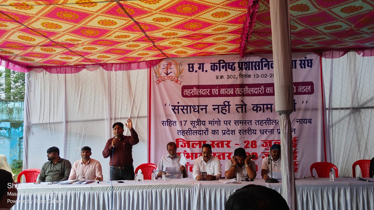 जिसमें बिलासपुर संभाग के अंतर्गत आने वाले 8 जिलों के 160 तहसीलदार एवं नायब तहसीलदार ने बिलासपुर के प्रगति मैदान मुंगेली नाका में धरना प्रदर्शन किए।