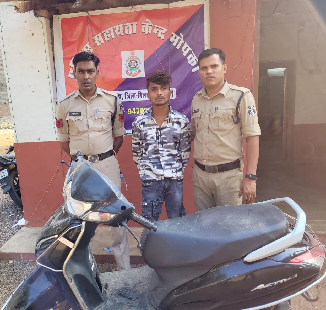 बिलासपुर – सरकंडा थाना क्षेत्र के मोपका चौकी अंतर्गत रामकृष्ण नगर मोपका निवासी प्रार्थी रमेश कुमार रात्रे के सुने मकान से 6 से 8 नंवबर के बीच ताला तोड़कर चोरी की घटना हुई थी, लेकिन इस चोरी में चोर के हाथ सोने चांदी के जेवर और नगदी नही लगने पर उसने घर के अंदर रखे एक्टिवा क्रमांक सीजी 12 बीपीजेड 1659 को चोरी कर फरार हो गया था। घटना की शिकायत प्रार्थी ने मोपका चौकी में की थी। जिस पर पुलिस अज्ञात चोर की तलाश में थी। विवेचना के दौरान आज मुखबीर से सूचना मिली कि बंधवापारा सरकंडा निवासी मुकेश यादव पिता स्व.दिनेश यादव उम्र 20 साल उक्त चोरी की एक्टिवा मोटर सायकल को बेचने के लिए ग्राहक तलाश कर रहा है। सूचना पर बंधवापारा में घेराबंदी कर आरोपी को पकड़ा गया जहाँ आरोपी के पास उक्त एक्टिवा को बरामद किया गया। जिससे पूछताछ करने पर उक्त एक्टिवा को 06.10.2024 की दरम्यिानी रात में रमेश रात्रे के घर में ताला बाहर से बंद होने पर ताला को तोडकर घर अंदर प्रवेश कर घर में रखे आलमारी में सोना चांदी एवं जेवरात को तलाश किया नही मिलने पर घर में रखे एक्टिवा को चोरी कर ले जाना बताया, उक्त एक्टिवा क्रमांक CG 12 BPZ 1659 कीमती 40000/रूपये को आरोपी के कब्जे से जप्त कर आरोपी को न्यायिक रिमाण्ड पर भेजा गया है। उक्त कार्यवाही में उपनिरीक्षक रामनरेश यादव प्रभारी पुलिस सहायता केन्द्र मोपका सउनि ढोलाराम मरकाम, प्र. आर. रविकांत सैनिक, आर. चंद्रप्रकाश भारद्वाज आर. दीपक कुमार एवं महिला आर. बिंदा अवस्थी का सराहनीय योगदान रहा।