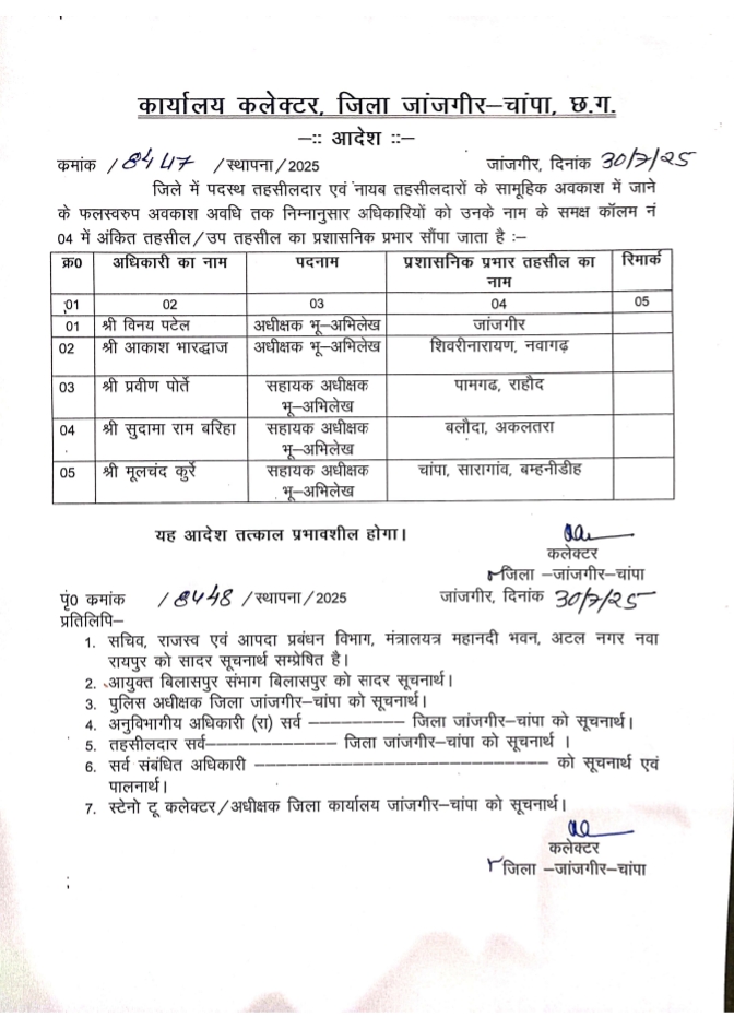 जांजगीर कलेक्टर ने भी जारी किया आदेश