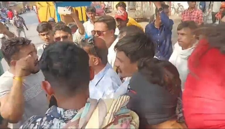एक दूसरे के गिरेबान पर हाथ डाल भिड़ गए कारोबारी और निगम कर्मी