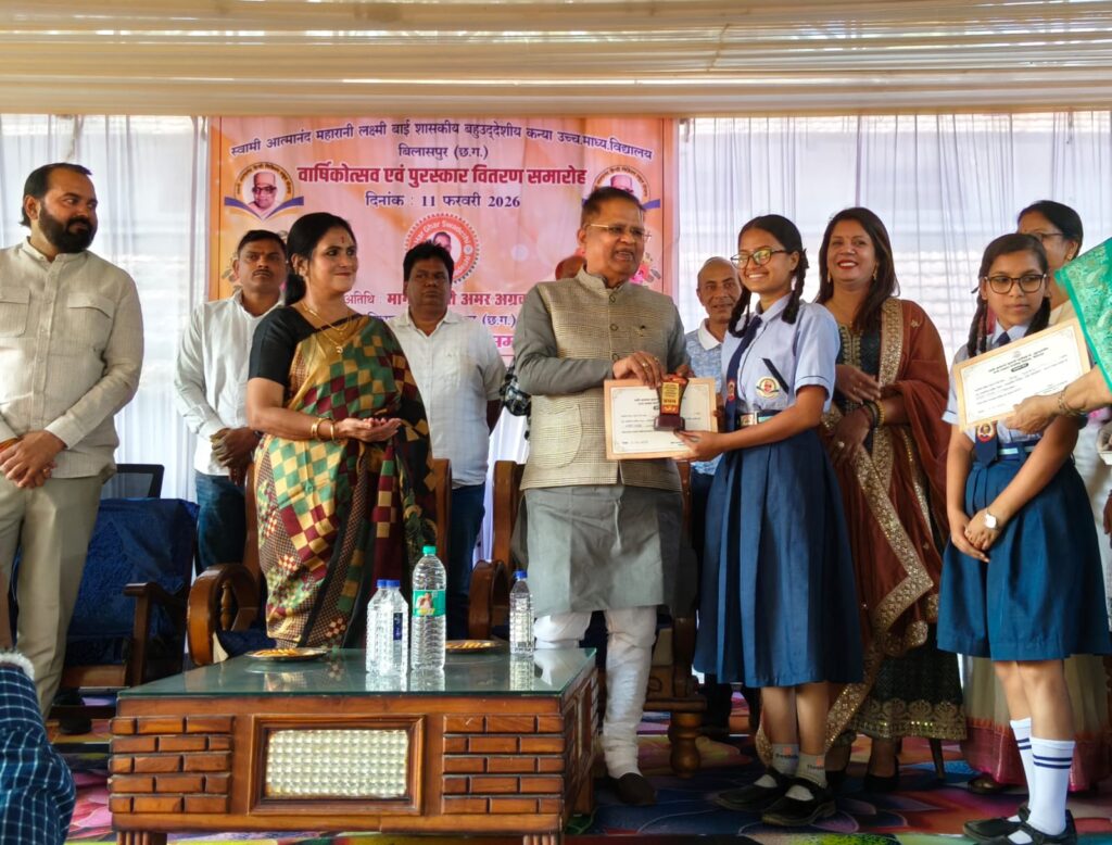 स्वामी आत्मानंद महारानी लक्ष्मीबाई शासकीय बहुउद्देशीय उच्चतर माध्यमिक विद्यालय में वार्षिकोत्सव एवं पुरस्कार वितरण कार्यक्रम संपन्न….MLA अमर अग्रवाल हुए शामिल