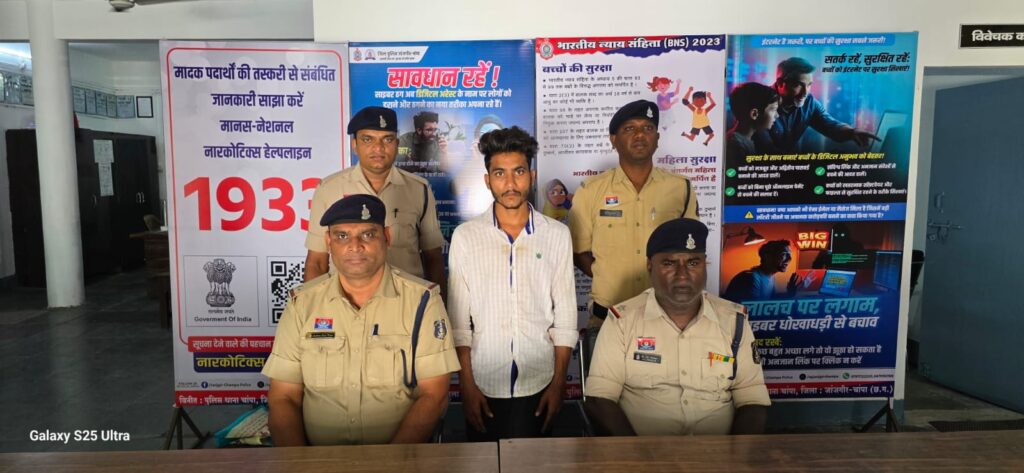जांजगीर। प्रार्थी गणेश कर्ष ने थाना आकर रिपोर्ट दर्ज कराया कि दिनांक 7-7-2025 को इसका भाई कार्तिक राम कर्ष जो PIL कंपनी में नौकरी करता है दिनांक 7-7-2025 को कंपनी से काम करने के बाद शाम 5:00 बजे घर वापस आया था और जगन्नाथ स्वामी के रथ यात्रा देखने गया हुआ था कि मोहल्ले का जगदीश कर्ज उर्फ कोली ने इसके भाई को जबरदस्ती शराब पीने साथ चलने के लिए परेशान कर रहा था भाई कार्तिक राम के द्वारा मना करने पर आरोपी जगदीश कर्ष उर्फ कोली ने इसके भाई कार्तिक राम को मां-बहन की अश्लील गाली गलौज करते हुए अपने पास रखे धारदार चाकू से पेट पर प्राण घातक हमला कर दिया जिससे कार्तिक राम कर्ष गंभीर रूप से घायल हो गया जिसे इलाज के लिए भर्ती कराया गया प्रार्थी की रिपोर्ट पर तत्काल अपराध पंजीकृत कर विवेचना में लिया गया घटना कारित करने के बाद आरोपी जगदीश कर्ष उर्फ कोली अपने घर से फरार हो गया था जिसे पुलिस टीम के द्वारा लगातार पता तलाश किया जा रहा था इसी क्रम में मुखबीर में सूचना मिला कि आरोपी जगदीश कर्ष उर्फ कोली रायगढ़ अपने दोस्त के यहां मिलने आया हुआ है सूचना मिलने पर तत्काल सूचना से जिले के *पुलिस अधीक्षक श्री विजय कुमार पांडेय (भापुसे)* अतिरिक्त पुलिस अधीक्षक श्री उमेश कश्यप, SDOP चाम्पा श्री यदुमणी सिदार को दिया गया जिस पर अधिकारियों द्वारा तत्काल पुलिस टीम को मौके की ओर रवाना कर आरोपी को पकड़ने के निर्देश दिए गए जिस पर थाना प्रभारी जयप्रकाश गुप्ता के निर्देशन में तत्काल एक टीम जिला रायगढ़ की ओर रवाना किया गया पुलिस टीम के द्वारा मौके पर पहुंचकर घेरा बंदी किया गया पुलिस टीम को आता देख आरोपी जगदीश कर्ष और कोली भागने के फिराक में था जिसे पुलिस टीम के आरक्षक द्वारा बिल्डिंग के प्रथम तल से कूद कर तथा आरोपी को दौड़ाकर पकड़ा गया पूछताछ करने पर आरोपी जगदीश कर्ष उर्फ़ कोली ने कार्तिक राम कर्ष के साथ मारपीट गाली गलौज कर धारदार हथियार से प्राण घातक हमला करना स्वीकार किया आरोपी के कब्जे से एक धारदार चाकू जप्त किया गया आरोपी को विधिवत गिरफ्तार कर न्यायिक रिमांड पर भेजा गया