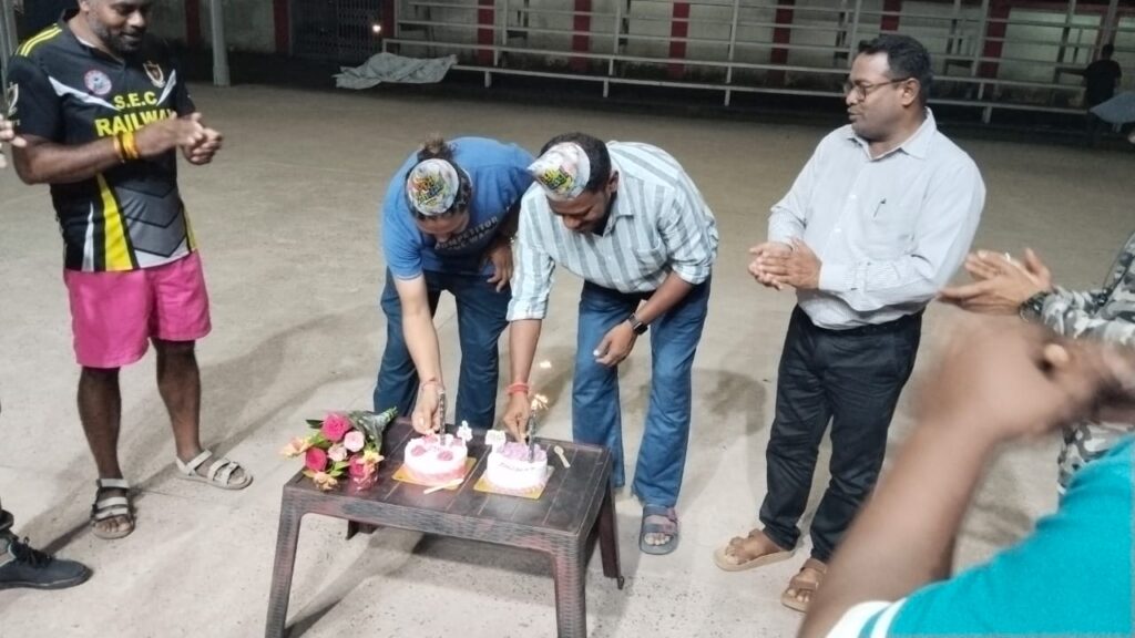 एसईसीआर के खेल अधिकारियों ने बॉक्सिंग रिंग में बर्थडे मनाया। यहां खेलने के लिए लगाए गए मेट में बैठ खेल अधिकारियों ने बर्थ-डे, मनाया। शराब और नॉनवेज के साथ जाम झलकाते हुए पार्टी की तस्वीर वायरल हुई है। अधिकारियों ने मामले में जांच की बात कही है।