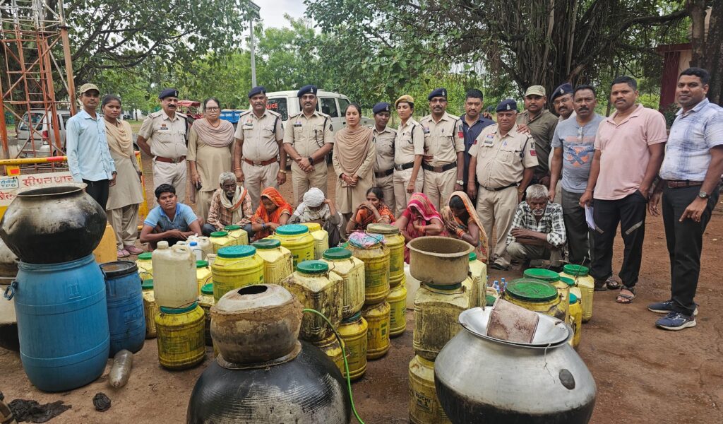 बिलासपुर। गांव की गलियों में सफाई के बहाने पहुंची खाकीधारी टीम ने ऐसा दांव चला कि शराब माफियाओं की सांसें थम गईं। सीपत पुलिस ने शनिवार को ग्राम खांडा में ‘ऑपरेशन झाडू-तसला’ के तहत अवैध शराब के अड्डों पर एक साथ धावा बोलते हुए 1040 लीटर कच्ची महुआ शराब और 5.76 लीटर देशी प्लेन शराब बरामद की, जिसकी कीमत लगभग ₹3.14 लाख आंकी गई है। इस दौरान 8 आरोपियों को रंगे हाथों गिरफ्तार कर न्यायिक हिरासत में भेज दिया गया है।