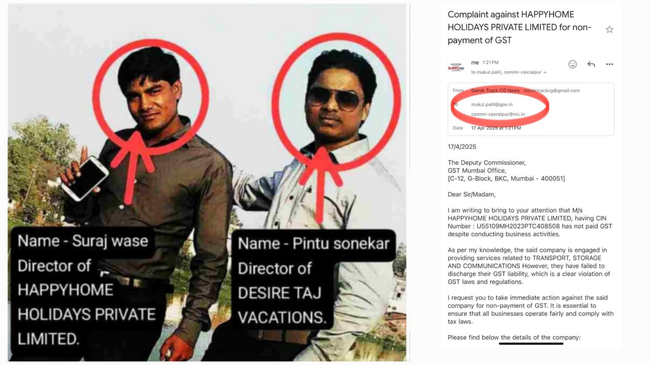 महासमुंद। छत्तीसगढ़ और महाराष्ट्र से जुड़ा एक बहुस्तरीय घोटाला उजागर हुआ है, जिसमें ‘HAPPYHOME HOLIDAYS PRIVATE LIMITED’ नामक कंपनी ने वेकेशन पैकेज, सोने के सिक्के और प्लॉट के नाम पर आम नागरिकों से करोड़ों रुपये की ठगी की। इस घोटाले का पर्दाफाश करने वाले पत्रकारों पर झूठी शिकायत दर्ज करवा उन्हें प्रताड़ित करने की कोशिश की गई। अब इस प्रकरण में वस्तु एवं सेवा कर (GST) चोरी का गंभीर पहलू भी सामने आया है।