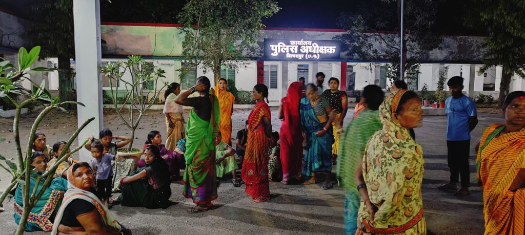 बंद एसपी ऑफिस के सामने धरना देकर बैठी रही महिलाएं