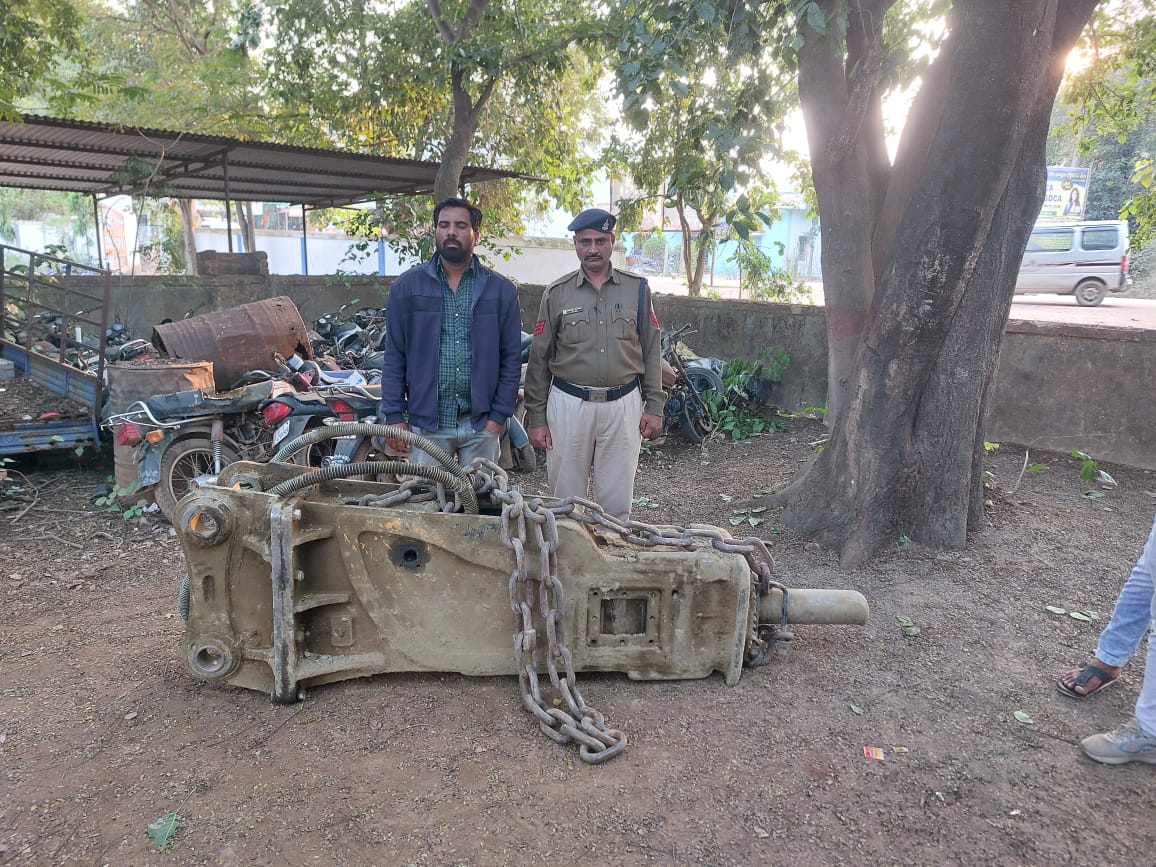 सक्ति। दरअसल दिनॉक 25.05.2022 को प्रार्थी लोकेश चन्द्रा पिता स्व० मोती चंद चन्द्रा उम्र 50 वर्ष साकिन नगझर जो कि अपने गाँव में ही चन्द्रा केशर उद्योग चलाता है कि उद्योग में आरोपी अजीत यादव द्वार माइनिंग खनन कार्य हेतु पोकलेन मशीन ठेका कार्य पर लगाया था जो कि पत्थर तोडने का ब्रेकर मशीन चन्द्रा केशर का लगाकर किराये से चला रहा था जो लगभग तीन-चार माह काम करने के पश्चात बरसात आने पर खनन कार्य बंद कर अन्यत्र जाने की बात बताकर आरोपी अजीत यादव द्वारा अपने पोकलेन मशीन में चन्द्रा केशर उद्योग का ब्रेकर मशीन कीमती 8,00000 रूपये को चारी कर ले जाने संबंध में रिपोर्ट दर्ज कराने पर थाना मालखरौदा में आरोपी अजीत यादव के विरुद्ध चोरी का अपराध पंजीबद्ध कर लगातार पता तलाश किया जा रहा था आरोपी फरार था। कि प्रकरण पुराना होने तथा मामले की गंभीरता को देखते हुये SP सुश्री अंकिता शर्मा ASP सक्ती सुश्री रमा पटेल एवं SDOP मनीष कुंवर के दिशा निर्देश तथा उचित मार्गदर्शन पर मामले के आरोपी अजीत यादव पिता अनिल यादव उम्र 30 वर्ष साकिन खैराट थाना खामपार जिला देवरिया (उ0प्र0) के पता तलाश हेतु विशेष टीम गठित कर आरोपी का पता साजी हेतु टीम रवाना कर आरोपी को शहडोल म०प्र० में पता साजी कर मिलने पर आरोपी से पूछताछ करने पर उक्त अपराध घटित करना स्वीकार करने से आरोपी के कब्जे से चोरी किये गये मशरूका पत्थर तोडने का ब्रेकर मशीन कीमती 8,00000/ को आरोपी से शहडोल से बरामद कर आरोपी को गिर० कर आज दिनाँक 06.12.2024 को आरोपी को माननीय जे०एम०एफ०सी० न्यायालय में पेश कर आरोपी को न्यायिक रिमाण्ड पर भेजा गया है। उक्त कार्यवाही में थाना प्रभारी राजेश पटेल, सउनि राधेश्याम राठौर आर० महेन्द्र कंवर, शरद सिदार, हरीश चन्द्रा, नान्ही राम यादव का विशेष योगदान रहा।