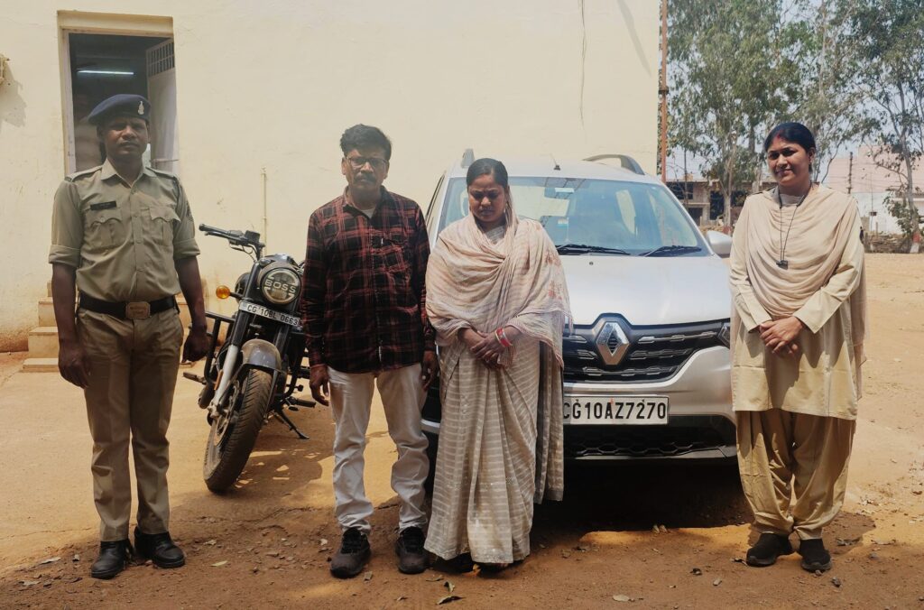 सीपत पुलिस ने बताया कि ग्राम पोड़ी निवासी गायत्री सूर्यवंशी पति संजय सूर्यवंशी (35) ने रिपोर्ट दर्ज कराया है कि ग्राम पोड़ी निवासी प्रमिल दास मानिकपुरी व उसकी पत्नी रंजना मानिकपुरी ने गांव में नल उत्खनन, नाली निर्माण, सीसी रोड, नया तालाब उत्खनन, के नाम पर 400 महिलाओं के विभिन्न बैंकों से 51 लाख 87 हजार रुपए का लोन निकलवा लिया है। मामले में पुलिस ने अपराध दर्ज कर आरोपियों की तलाश शुरू कर दी। इस बीच पुलिस को सूचना मिले कि आरोपियों को सेंदरी बाइपास बिलासपुर के पास देखा गया है। इस सूचना पर पुलिस ने छापामार कार्रवाई करते हुए प्रमिल दास मानिकपुरी व उसकी पत्नी रंजना मानिकपुरी को गिरफ्तार कर लिया। पूछताछ करने पर आरोपियों ने एक बाइक कीमत 2 लाख 50 हजार रुपए, एक कार कीमत 7 लाख, टीवी कीमत 50 हजार, मोबाइल कीमत 75 हजार मिलाकर 10 लाख 75 हजार रुपए की संपत्ति खरीदी है। पुलिस ने दोनों से सभी संपत्ति जब्त कर लिया है। दोनों को जेल भेज दिया गया है।