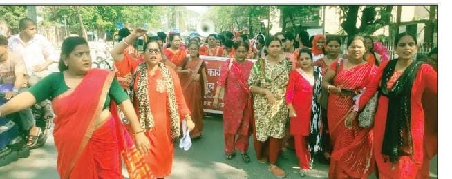 11 सूत्रीय मांगों को लेकर आंगनवाड़ी कार्यकर्ताओ की निकली रैली
