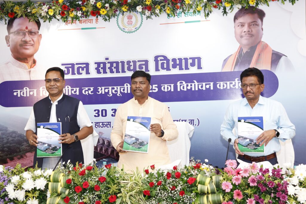 रायपुर /बिलासपुर। जल संसाधन विभाग के अंतर्गत सर्वेक्षण, अनुरक्षण एवं निर्माण कार्यों के लिए दर अनुसूची का विमोचन जल संसाधन मंत्री केदार कश्यप के गरिमामय उपस्थित में किया गया। जिसमें सचिव सुकुमार टोप्पो,