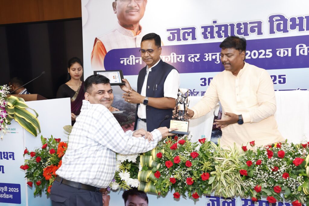 जल संसाधन विभाग सचिव राजेश सुकुमार टोप्पो, प्रमुख अभियंता इंद्रजीत उइके द्वारा समय सीमा में नवीन दर अनुसूची तैयार करने उत्कृष्ट कार्य के लिए आलोक अग्रवाल अधीक्षण अभियंता(बोधी), संजय पाठक,आई ए सिद्दीकी सतीश सराफ,विजय खरे ललित राउते शशांक सिंह सुश्री कलश रामटेके सहित अन्य अभियंताओं को प्रशस्ति पत्र और स्मृति चिह्न देकर सम्मानित किया ।
